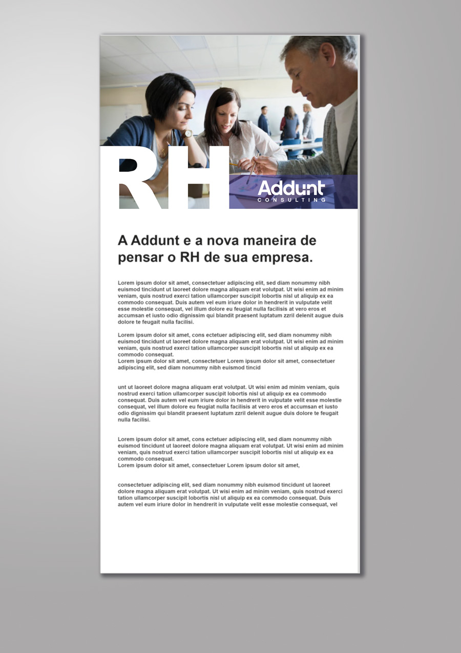 Campanha de Marketing Digital para a empresa Addunt Consulting que envolveu a criação de identidade visual, geração de conteúdo e criação de postagens e artigos no site da empresa e na Company Page da rede social Linkedin, além de disparos de Mail Marketing para os stakeholders. O objetivo da campanha era fortalecer a marca como advicer, abordando temas técnicos e didáticos para seus clientes. Foi elaborada uma identidade visual que foi replicada no banner da pagina principal do site, nos posts em redes sociais e nos emails.