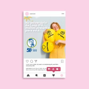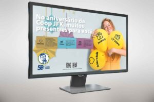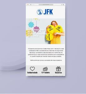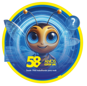O cliente Coop JFK solicitou a criação de um logotipo para ações comemorativas aos 58 anos da Cooperativa. Foram criados 2 logotipos, para serem utilizados em momentos diferentes, de acordo com a conveniência de formalidade. Na dinâmica 1 (tradicional) apresenta-se o logo da Cooperativa com uma proposta mais formal e na dinâmica 2 (modernidade) a imagem da personagem Bee-IA, criada em Inteligencia artificial como mascote do evento e para o lançamento da ferramenta de atendimento virtual no site da empresa utilizando tecnologia DialogFlow do Google e ChatGPT.
