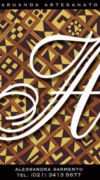 O Projeto Aruanda definiu logomarca e identidade visual, cartões de visita, camisetas, wrobblers, cartazes, etiquetas e sacolas para a griffe de artesanato do Rio de Janeiro.