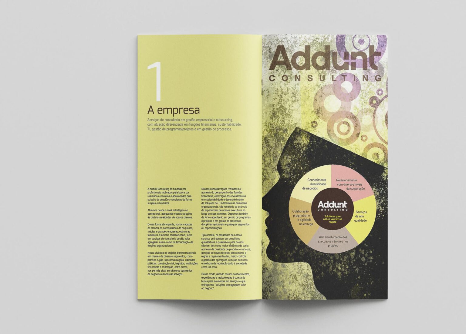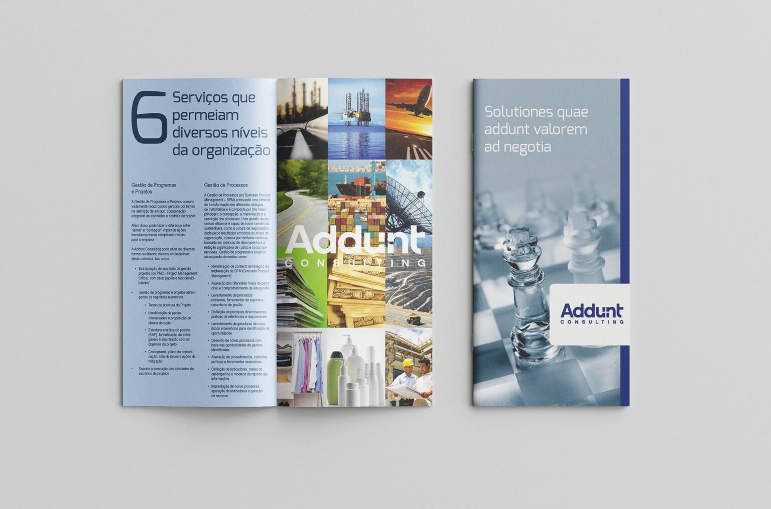Empresa de Consultoria em tecnologia e negócios, a Addunt Consulting brifou a criação de um website e identidade visual para o folder de lançamento da marca no mercado, detalhando seu amplo portfolio de serviços e toda a abrangência de alcance do seu público alvo. O maior desafio do projeto foi manter o equilíbrio da identidade corporativa considerando a variedade de imagens, textos e gráficos que representassem as múltiplas indústrias e segmentos que a empresa pretendia alcançar.
