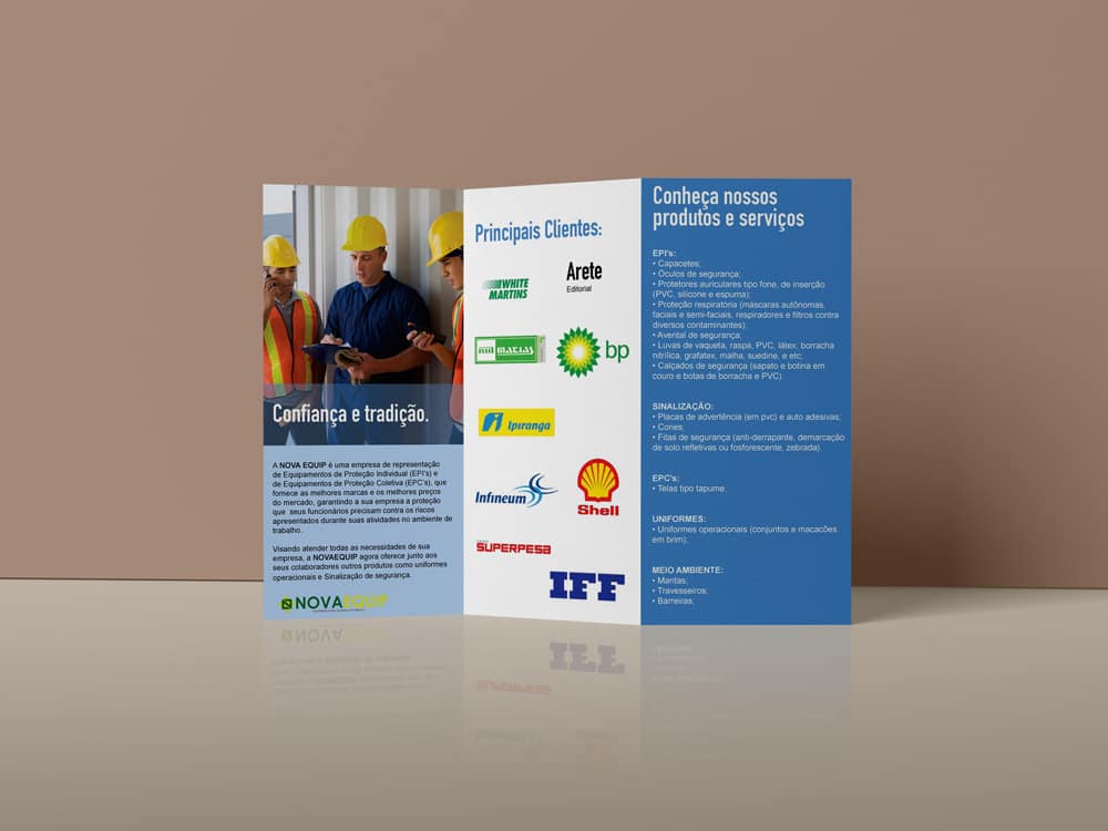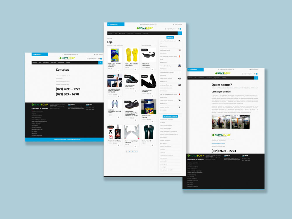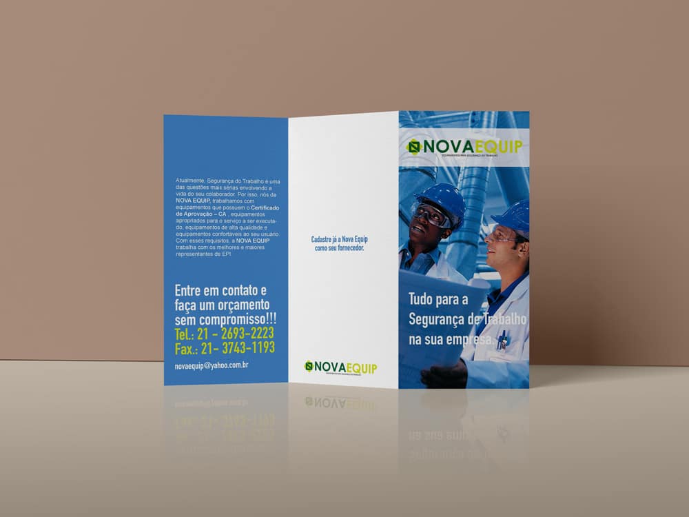 A NOVA EQUIP é uma empresa de representação de Equipamentos de Proteção Individual (EPI’s) e de Equipamentos de Proteção Coletiva (EPC’s) que atua no Rio de Janeiro. Este projeto incluiu a criação de logomarca, produção de fachada para loja física, identidade visual para Feira/Evento, produção de website para e-commerce, banners digitais e folder impresso