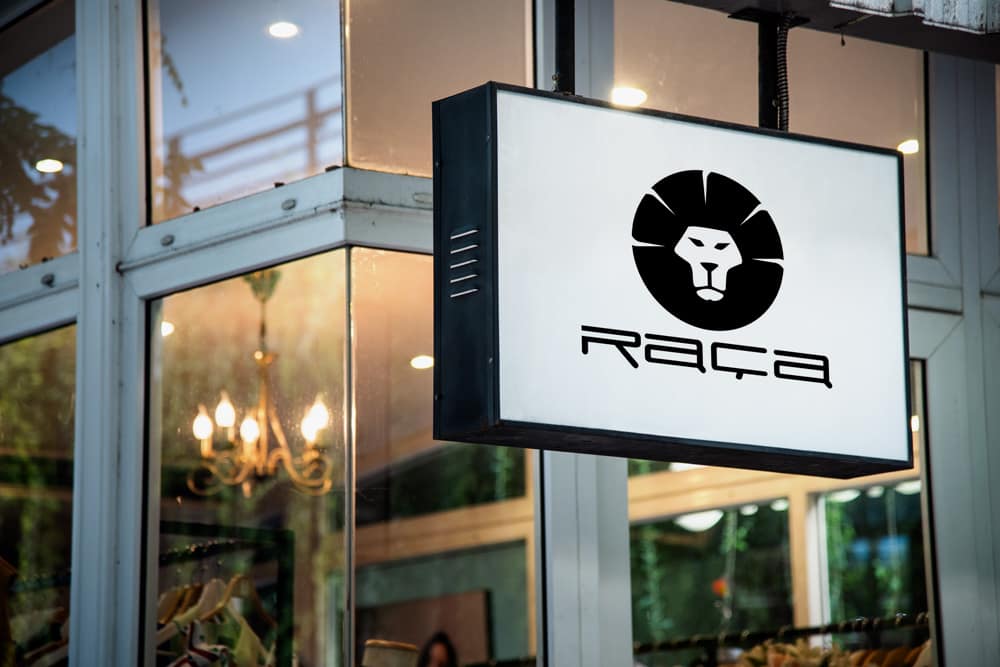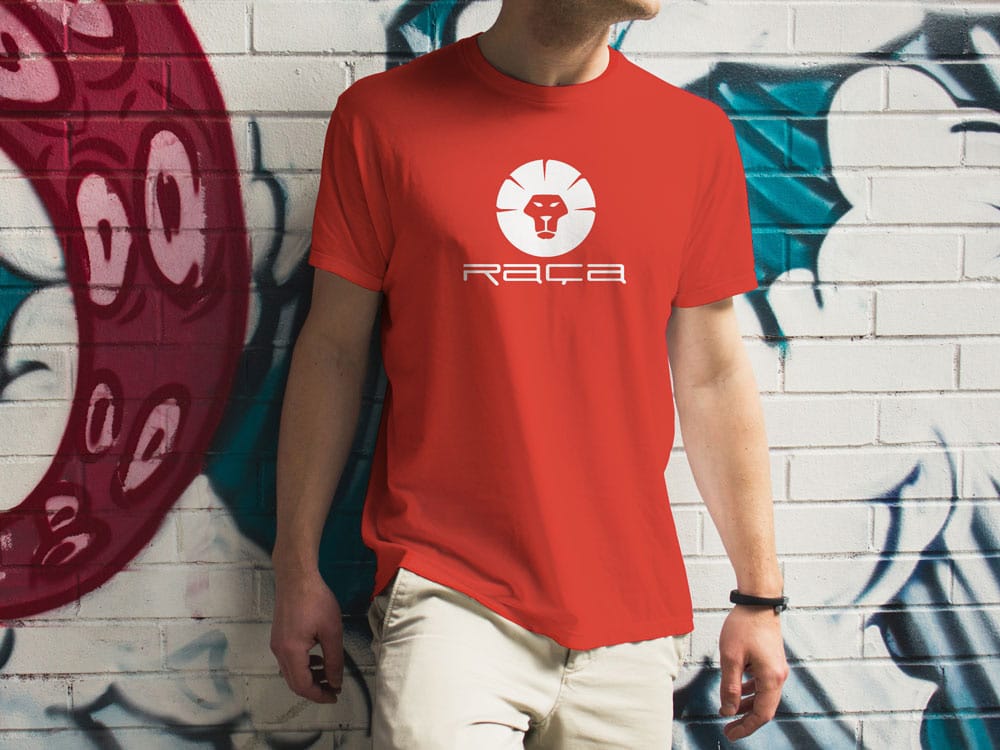 Criação da logomarca para a grife “Raça”. O desafio consiste em criar um marca simples porém geométrica na escolha da fonte e imagem com aplicação monocromática, sempre preto ou branco sobre superfície.