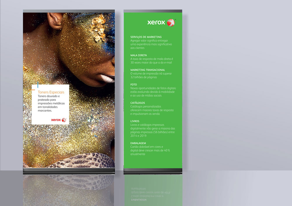 O Projeto definiu a participação da Xerox Brasil no evento anual ExpoPrint na cidade de São Paulo com o tema “Let The Work Flow”. O desafio deste projeto foi atender as regras de guideline da nova identidade visual criada pela Xerox americana para esta nova estratégia de negócio que estava sendo lançada no mercado global. A Xerox Brasil gerenciou o projeto que foi validado e aprovado pela Xerox Corporation nos EUA. Foram criados a identidade visual do stand, blockletters para a logomarca, painéis impressos, slideshows e videos para os monitores nas ilhas. A produção do stand é da empresa parceira Winston Arnauld de São Paulo.
