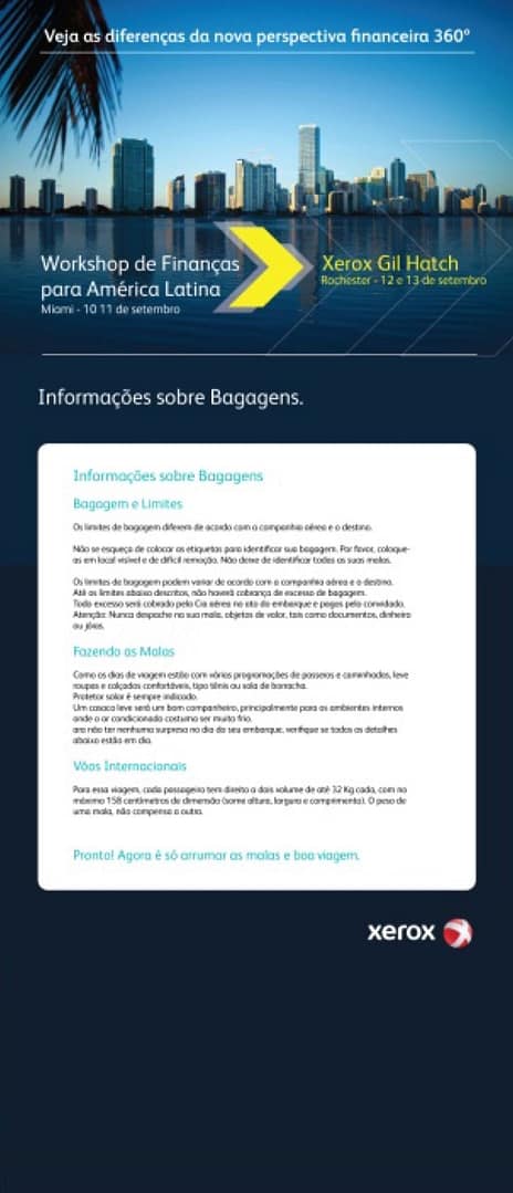A Xerox Brasil solicitou a criação de banners para comunicação interna de suas ações estratégicas com seus funcionários.