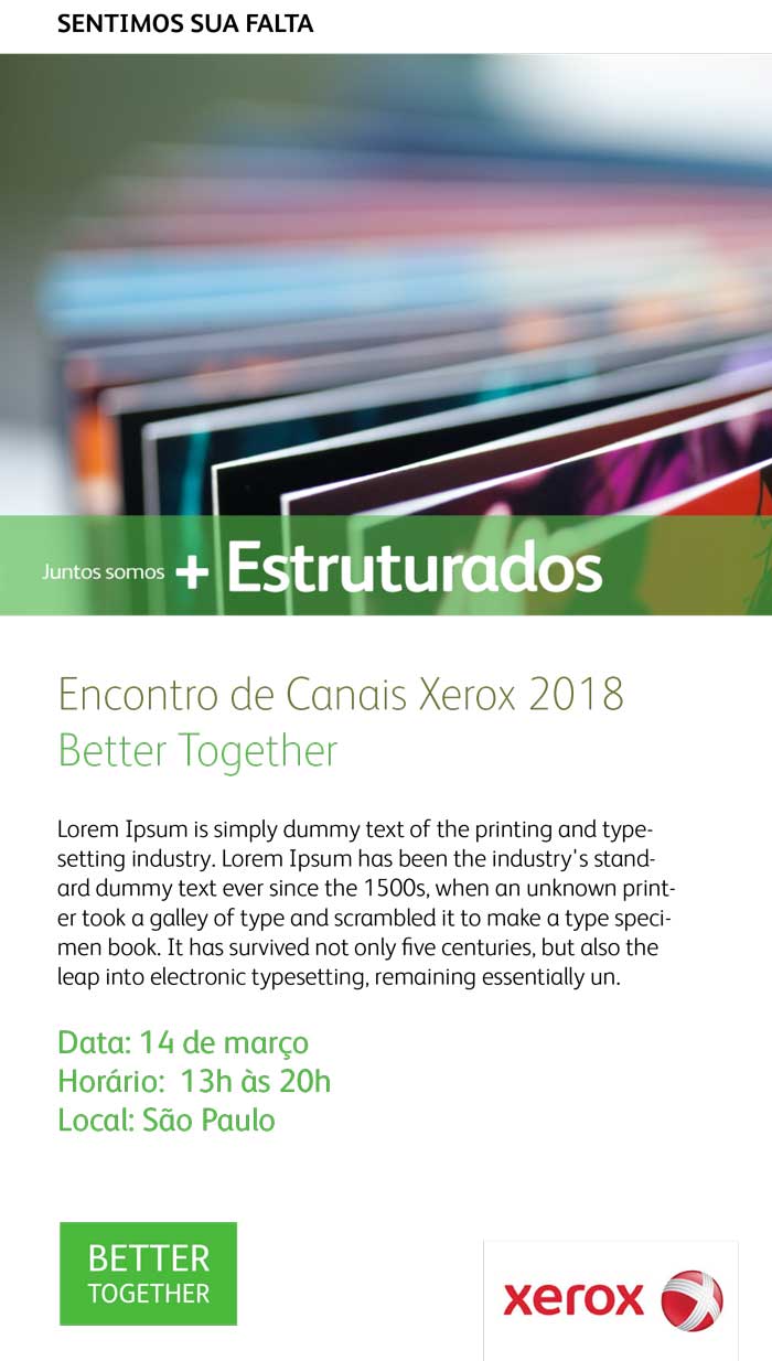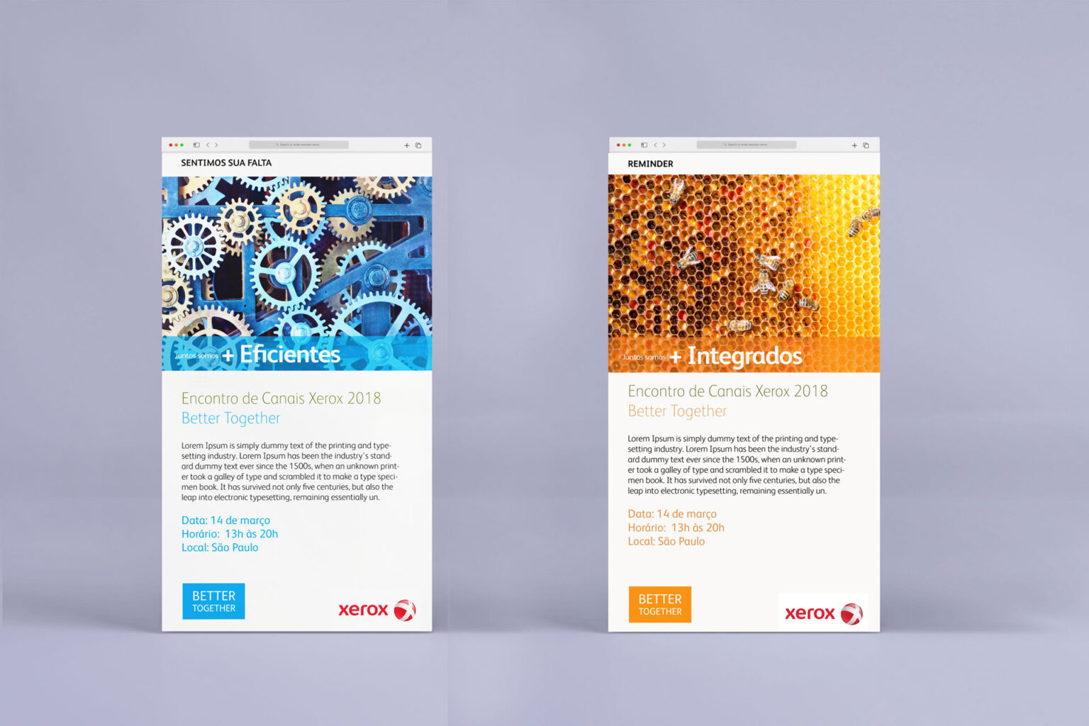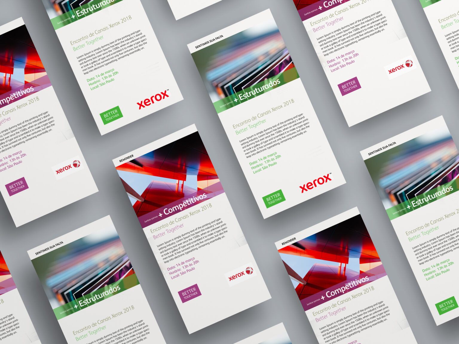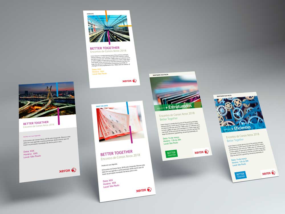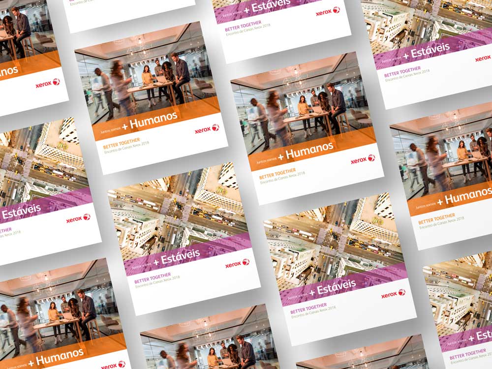 “Better Together” foi o tema principal e estratégia de negócios apresentada pela Xerox Brasil no evento Encontro de Canais 2018 realizado na cidade de São Paulo para seus parceiros e stakeholders. Para este projeto a empresa solicitou a criação da identidade visual para cartazes, cenografia de palco, MailMarketing, landing page, banners, crachás, certificados, slideshow, etc…