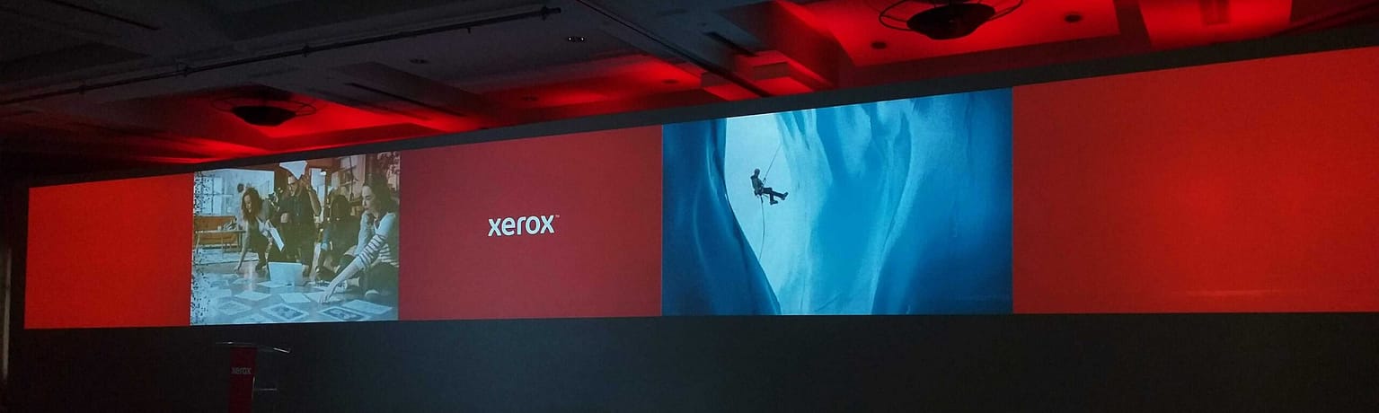 O Encontro de Canais é um evento anual da Xerox Brasil onde são apresentados para os parceiros de vendas as estratégias de negócios da empresa. Para o ano de 2019 foi solicitada a adaptação de layout para as apresentações PPT no palco principal do evento em formato Wall e o material impresso. O desafio do projeto foi adaptar a identidade visual padrão da Xerox americana (mantendo as mesmas características do projeto original), porém apresentando um diferencial no conceito visual. A produção do palco é da empresa parceira AVB Rio do Rio de Janeiro.
