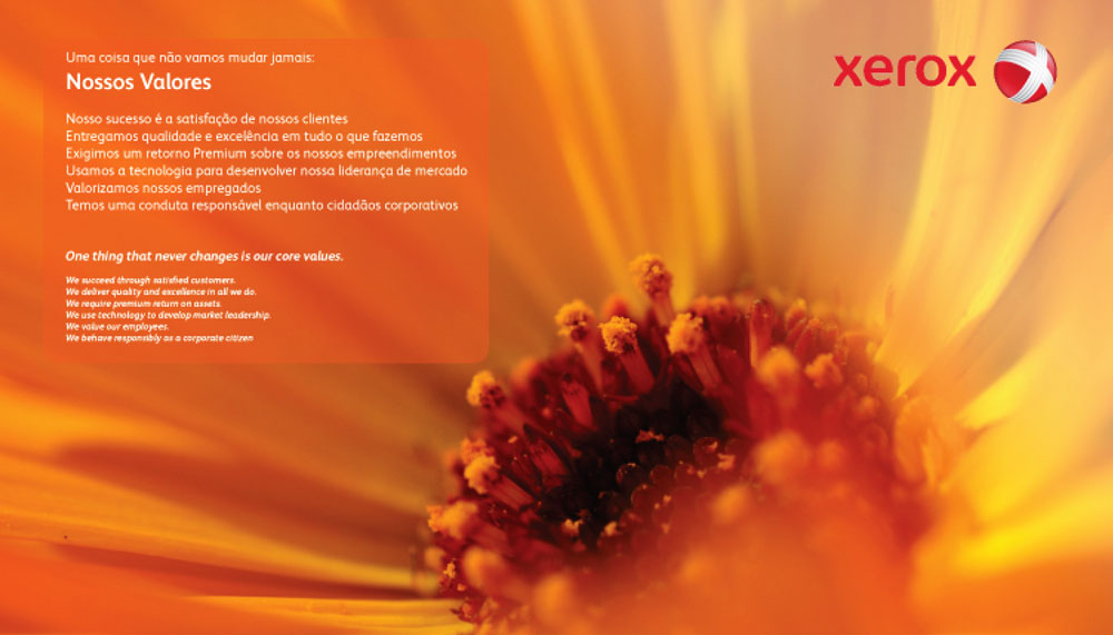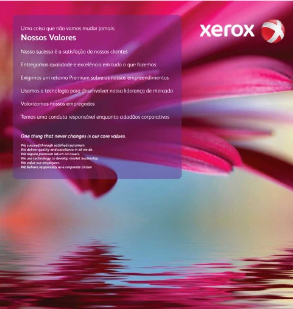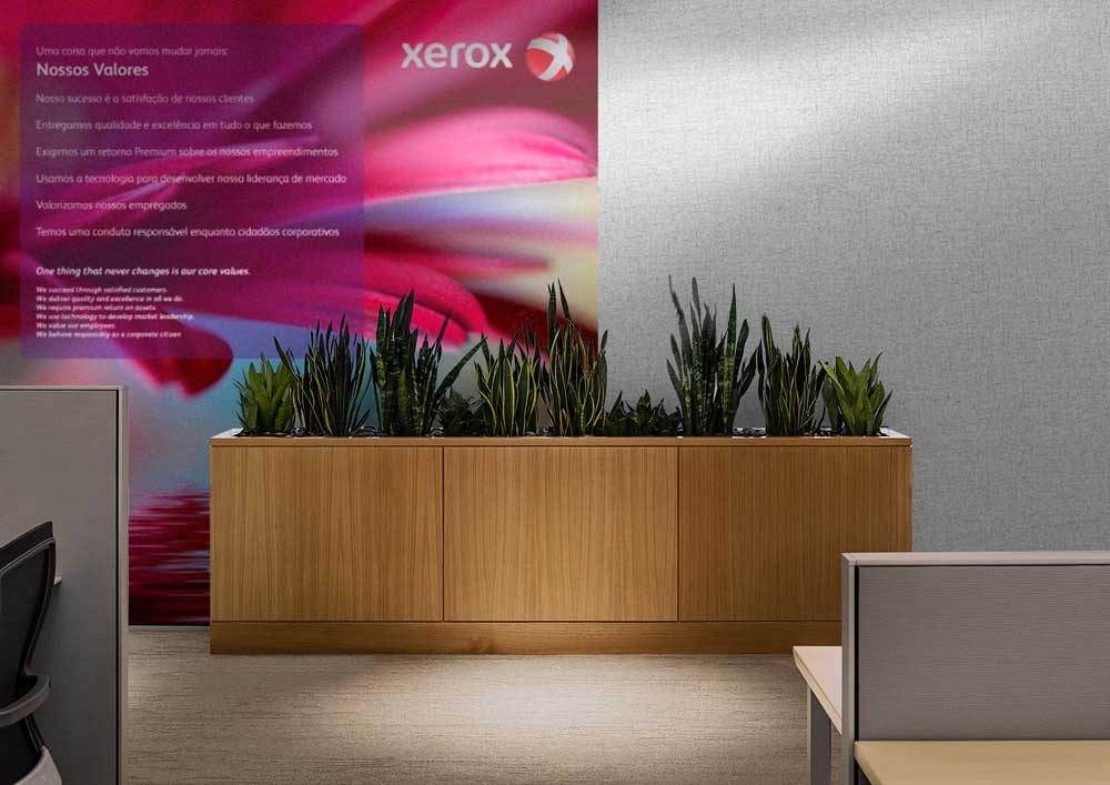 A Xerox Brasil solicitou a criação e produção de painéis divulgando a missão, a visão e os valores da empresa.Os Projetos foram realizados nos escritórios do Rio de Janeiro, Barueri e Avenida Paulista.