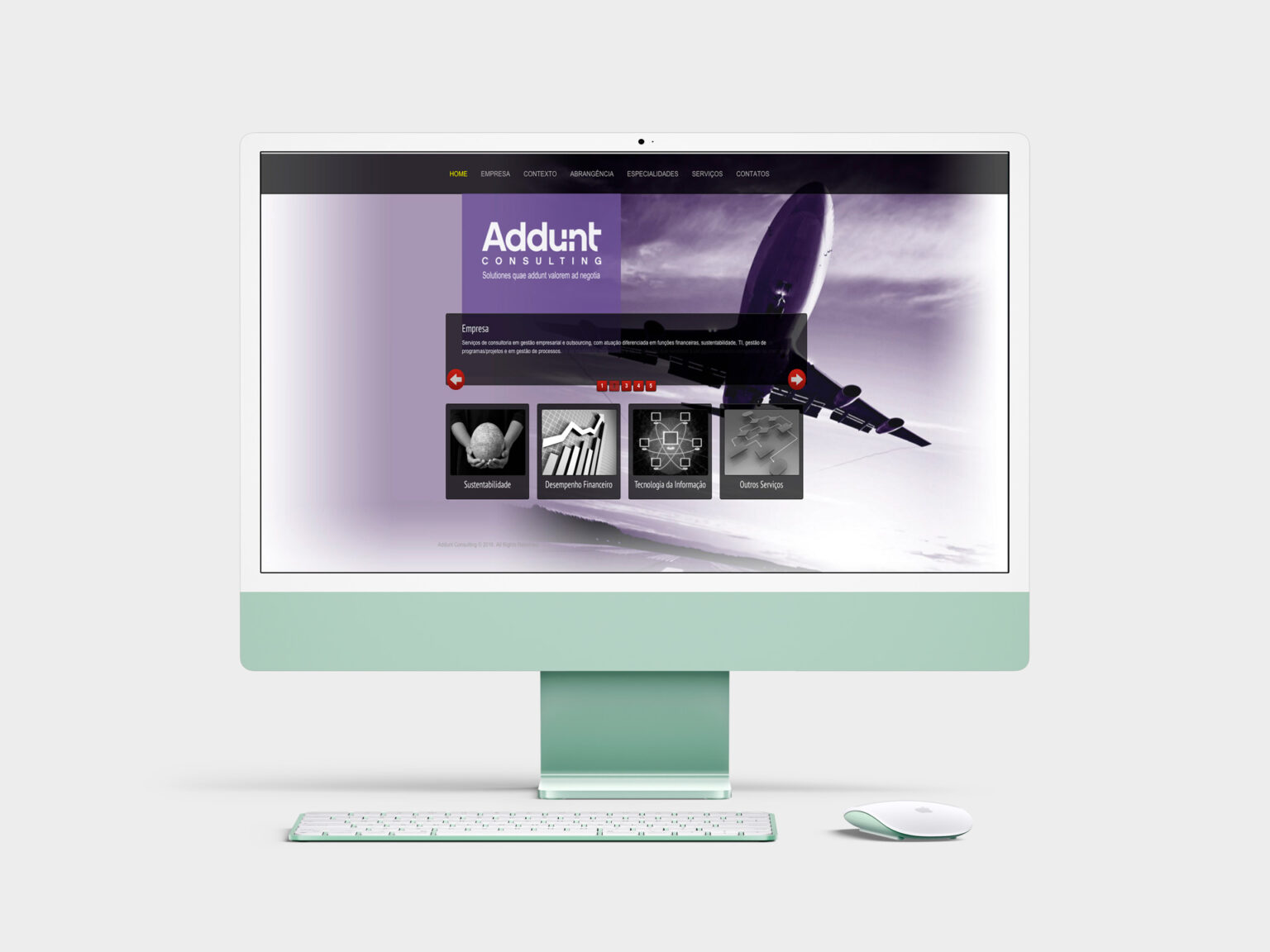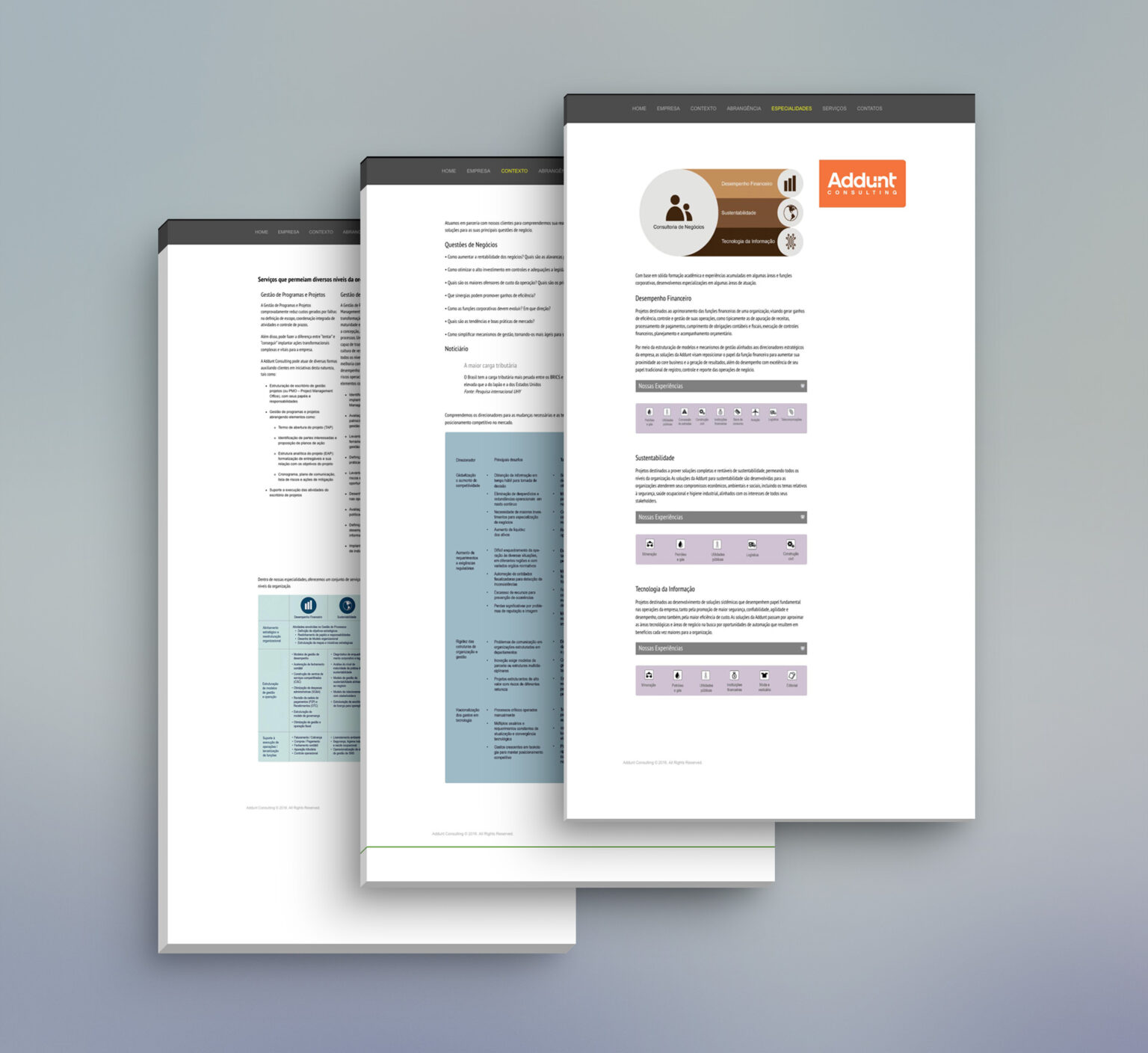 A empresa de Consultoria Addunt Consulting solicitou a criação de um website para o lançamento da marca no mercado. O objetivo era apresentar o seu amplo portfólio de serviços e transmitir de forma visual e imediata, todas as industrias classificadas como seu público alvo.